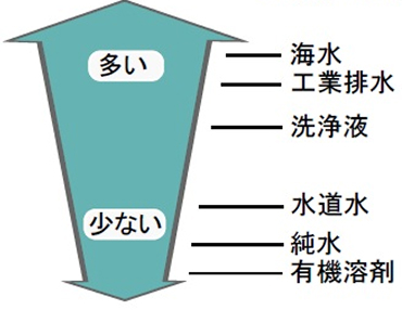 海水などのイオン化物質や排水などの水溶性の物質が多いと生成されやすくなります
