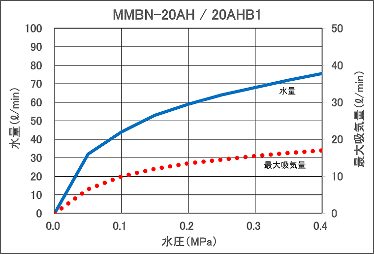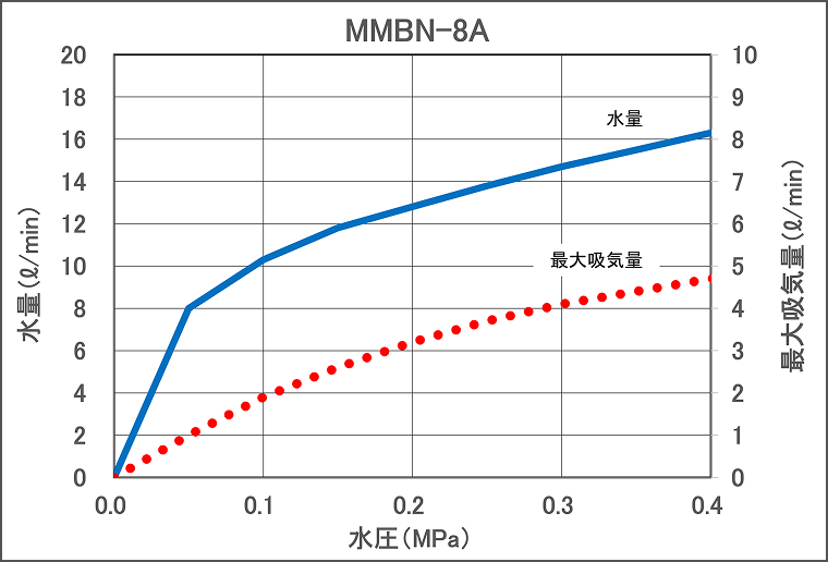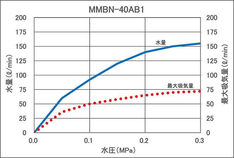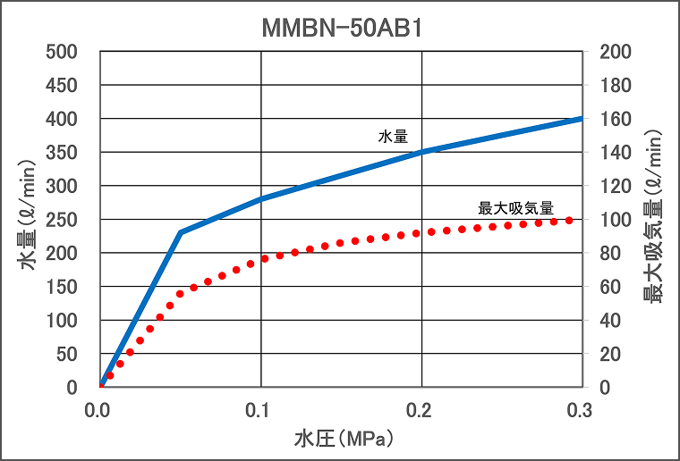 ※水中ポンプ運転時に、気体は自吸されます。吸気量はマイクロバブル生成量ではありません。液質によりマイクロバブル生成量は変動しますので、最適な吸気量を調整してください。