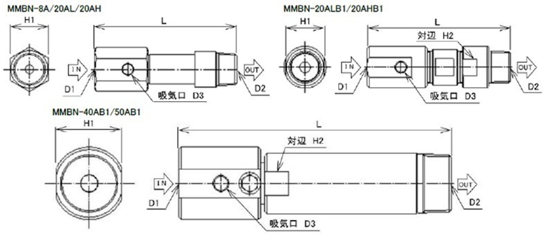 | MMBN-8A | 8A | 一体 | 69 | 24 | – | Rc1/4 | R1/4 | Rc1/8 | 2 | 0.14 |